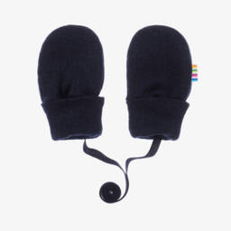 Pink mittens for baby girls by Joha, knitted from fine Merino wool jersey. Soft, stretchy, and ribbed, they have a striped logo tab on the side seam.