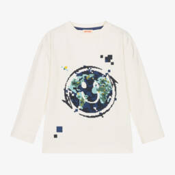 Exclusive to Childrensalon, a white cotton top for girls by British brand Joyday. Made in soft, comfortable jersey, it has a colourful confetti print on the front with the word 'Happy', just right for spreading positive vibes.