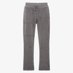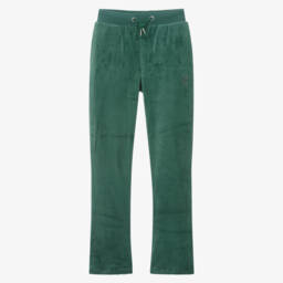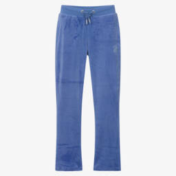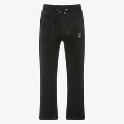 Girls pink velour bootcut joggers by Juicy Couture are crafted in the brand's signature luxurious velour. Featuring stylish flared legs and an eye-catching iridescent diamanté monogram on the front, these joggers add glamour to relaxation. Designed for comfort with a soft, stretchy feel, they include side seam and back pockets along with a drawstring waistband for an adjustable fit. Perfect for casual outings or lounging, these joggers are available in limited quantities, so don't miss the chance to get them.