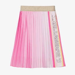 Stylish denim skirt for girls by KARL LAGERFELD KIDS, in a dark blue wash. Made from stretch cotton denim, it ensures lasting comfort with a ribbed jacquard waistband featuring the brand's iconic logo. The skirt fastens with a matte black zip on one side and includes a combination of slanted and concealed pockets for an urban, edgy look. Limited quantities available, making it a last chance to buy this unique piece.