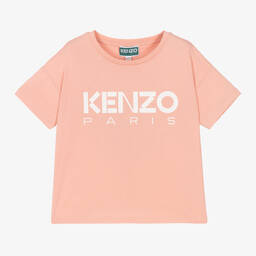 Pink T-shirt for baby girls by KENZO KIDS, made in soft and stretchy organic cotton jersey. It has the brand's multi-iconic print, featuring the Pop Tigers on the front and back and signature Tiger logo on one side.