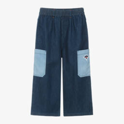 Boys relaxed blue denim trousers by KENZO KIDS bring a touch of style to every day. Crafted from durable cotton denim, they feature an adjustable waistband and mustard yellow topstitching for a modern finish. The distinctive 'K' appliqué on the back pocket adds a designer touch. Suitable for autumn and winter adventures, these jeans offer comfort and practicality. Limited quantities available, so seize the opportunity to add this stylish piece to the wardrobe.