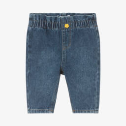 Girls denim wide-leg trousers by KENZO KIDS offer a stylish option in dark blue cotton. Featuring an elasticated waistband, decorative gold button, and mustard yellow stitching, they exude an authentic charm. Pleats below the waistband add a tailored touch, while a cartoon-style tiger and Kenzo Paris embroidery on the back pocket provide distinctive designer flair. Suitable for a chic, casual look, these jeans are available in limited quantities, making them a must-have for the season.