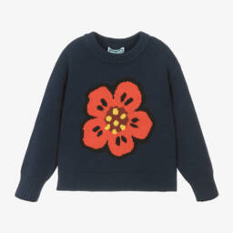The girls navy blue floral knit jumper by KENZO KIDS is a charming choice for autumn and winter. Crafted in a soft, mid-weight blend of cotton, viscose, and wool, it features cosy ribbed trims. The iconic Boke Flower in vibrant red, black, and yellow decorates the front, while a white jacquard logo graces the back. Ideal for adding warmth and style, it's a last chance to buy with limited quantities available.