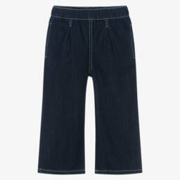 Bleach denim logo jeans for girls by KENZO KIDS feature a high-rise waist and a trendy tapered-leg design. Crafted from soft blue cotton denim, these jeans offer a playful touch with a vibrant fruit sticker logo in yellow and red. Practical elements include side seam pockets and an adjustable waist, ensuring a comfortable fit. Ideal for spring and summer adventures, these jeans are available in limited quantities, so don't miss your chance to add them to your wardrobe.