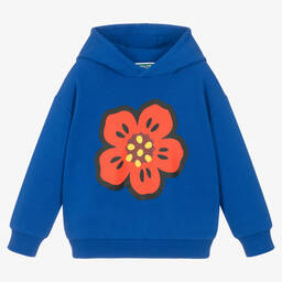 Navy blue hoodie for boys and girls from KENZO KIDS, made in soft and comfortable mid-weight cotton jersey with stretchy ribbed trims. Great for casual wear, it has the brand's signature Boke Flower printed boldly on the front. To complete the designer look, a Kenzo Paris logo is printed on the back in white.