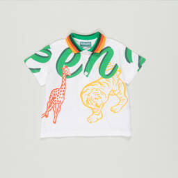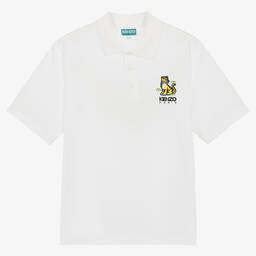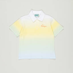 From KENZO KIDS, blue polo shirt for teen boys with a white logo on the chest for instant recognition. For an added designer touch, this soft cotton jersey, relaxed fit top fastens with branded buttons on the front.