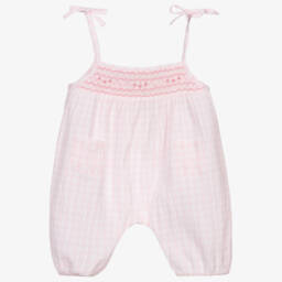 The baby girls floral printed shortie by Kidiwi features a delightful red and pink ditsy design. Crafted from lightweight cotton poplin, it boasts a charming hand-smocked bodice and frilly trims on elasticated cuffs for a traditional touch. The soft voile lining ensures comfort, while button fastenings add ease of wear. Perfect for spring and summer outings, this piece offers both style and practicality. Limited quantities available, making it a unique addition to any wardrobe.