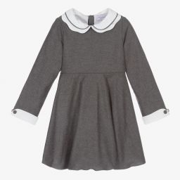 Pretty burgundy red dress, handmade by French brand Kidiwi. Made in lightweight organic cotton twill, it has a double white collar, one with burgundy red piping and the other scalloped. The sleeves have matching white cuffs with decorative, fabric-covered buttons that match the fastenings on the back. Fully lined, it has a beautifully flared skirt.
