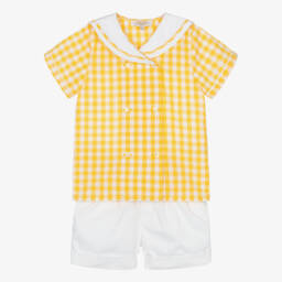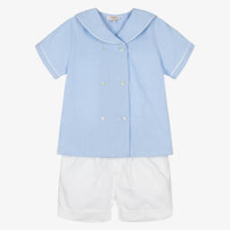 Girls red floral cotton shorts set by Kidiwi is a charming addition to any wardrobe. Featuring a soft cotton top with a hand-smocked panel and floral embroidery, it offers a traditional yet stylish look. The top has a square neckline, ruffle sleeves, and a back button fastening. The white shorts are fully lined with pin-tuck detailing, front pockets, and a scalloped hem. The adjustable elasticated waistband ensures a comfortable fit. Limited quantities available.