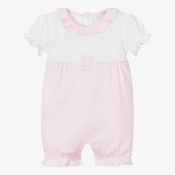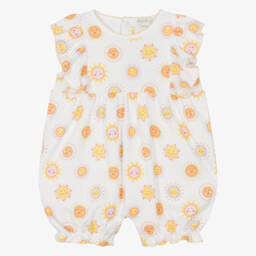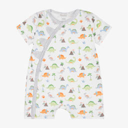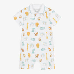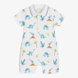 Baby boys blue lighthouse shortie by Kissy Kissy is crafted from super soft Pima cotton jersey, featuring adorable lighthouse embroidery on the upper part and delicate stripes on the lower part. It has popper fastenings on the back and between the legs for easy dressing. Limited quantities available, last chance to buy.