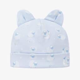 Delightful pink hat for baby girls from Kissy Kissy. Made in super soft Pima cotton jersey, it is comfortable against delicate skin. It has a white print of sleepy lambs and 3D ears on the top for a sweet finish.