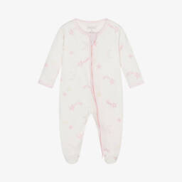 This charming ivory star pattern babygrow for boys by Kissy Love features an enchanting design with soft Pima cotton jersey. The blue stars and moons print is complemented by pale blue trims, and includes a practical two-way zip with a chin guard for added comfort. Fold-over scratch mitts are included on smaller sizes, making it a lovely choice for cosy nights. Limited quantities available, making it an exclusive choice for your little one's wardrobe.