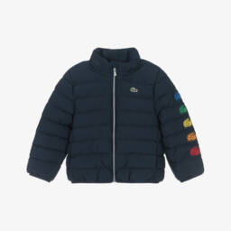 Boys red and navy blue windcheater style jacket by Lacoste. Lightweight and sporty, it is made from recycled polyester and has a fixed hood with mesh lining and a half-zip fastening with flap over. There is a logo branded panel across the chest and a crocodile logo appliqué. The cuffs and hem are elasticated and it has a full mesh lining.
