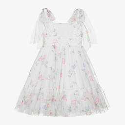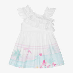 • Lapin House-Girls' White Floral Linen Frock | Childrensalon Outlet