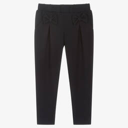 Smart casual red viscose blend trousers for girls by Lapin House, with pretty bows on the front. They are made in super soft and comfortable jersey with a stretchy, elasticated waistband and have useful jetted front pockets.