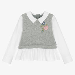 The girls blue bow strap top by Lapin House is crafted in soft cotton seersucker, ideal for warm spring and summer days. This charming sleeveless design features a striking bow on the front, complemented by wide ivory straps adorned with pastel floral prints and delicate lace trim. Lightweight and breathable, it ensures comfort while adding a touch of elegance. Limited quantities available, making it a perfect choice for a stylish wardrobe addition.