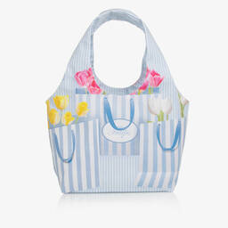 Lovely turquoise blue cotton poplin handbag for girls by Lapin House. A chic addition to any girls wardrobe, it has a sweet colourful ice cream print on the outside and a striped lining.