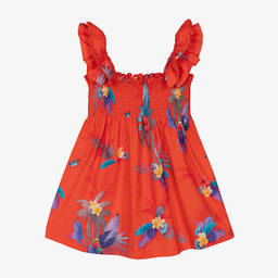Girls yellow flower print dress by Lapin House is made from soft, lightweight cotton. This bright, casual style features a stretchy, shirred bodice for comfort and easy dressing, with pretty layered ruffles on the shoulder straps. Perfect for spring and summer occasions, limited quantities available—last chance to buy.