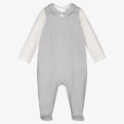 Boys soft blue babysuit by Laranjinha features a charming double-breasted design with delicate buttons. Crafted from pure cotton, it offers exceptional softness and comfort, making it perfect for keeping little ones cosy during the cooler months. The classic Peter Pan collar adds a touch of timeless elegance, while the enclosed feet ensure warmth and snugness. Limited quantities available, so seize this last chance to buy this adorable piece for your little one's wardrobe.