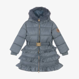 Girls light blue coat by Le Chic offers elegance and warmth for the autumn and winter seasons. Crafted from woven recycled polyester, it features a luxurious faux fur-trimmed hood and a stylish belted waist. The coat's charming ruffled design adds a touch of sophistication, making it perfect for special occasions or everyday wear. Limited quantities available, so ensure this delightful piece becomes part of your collection before it's gone.