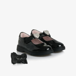 Smart black shoes for girls by Lelli Kelly, made in glossy patent leather. Ideal for school and formal occasions, these comfortable shoes are lined in soft and supple pink leather with padding around the ankle and a lightly cushioned insole. The velcro fastening strap can be adjusted for a good fit. Adding fun and versatile styling options, the shoes come with removable diamanté unicorns and black patent bows. A flexible, non-slip rubber sole adds a practical finish.