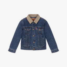 Stylish navy blue puffer jacket for boys by Levi's, with an exposed grey zip fastening. Super cosy and comfy, it has a soft fleece lining and is lightly padded for warmth. The silky smooth exterior is water resistant and has an embroidered Batwing logo on the chest, with logo tape trim down the sleeves. The hood, cuffs and hem are gently elasticated for a snug fit and good insulation. Adding an extra designer touch, there is a Levi's Red Tab on the zip puller and on the side seam.