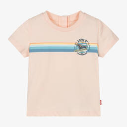 Teen boys beige cotton T-shirt by Levi's features a simple yet stylish design. Made from soft organic cotton jersey, it showcases a bold white branding on the front and the iconic Red Tab on the side seam. Perfect for casual wear, it offers comfort and a trendy look with its short sleeves. Limited quantities available - last chance to buy!