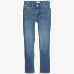 Teen girls blue Mini Mom jeans by Levi's offer a stylish loose fit. Crafted from mid-blue stretch denim, these high-rise jeans feature a classic five-pocket design and a tapered leg. The iconic Red Tab and 2-Horse logo patch add a signature touch. Completed with a branded button and zip fastening, these jeans include recycled fibres. Limited quantities available.