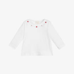 • Lili Gaufrette-Girls Pale Pink Cotton Top with Logo & Bows | Childrensalon Outlet