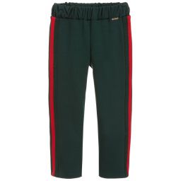 Girls black trousers by Loredana, made in a soft viscose blend jersey, with red and black ribbed trim on the sides.