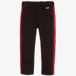 Girls black trousers by Loredana, made in a soft viscose blend jersey, with red and black ribbed trim on the sides.