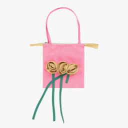 The white 3D floral bag is a charming accessory for girls, handcrafted by Mama Luma with attention to elegant details. This delightful bag features three pink satin flowers with green stems, adding a playful yet sophisticated touch. Constructed from smooth satin, it offers a single compartment perfect for carrying small essentials, secured with a convenient zip fastening. Limited quantities available, making it a must-have for spring and summer outings.