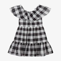 Washed black pinafore dress for girls by Mayoral. Made in mid-weight denim with a slight stretch, it has sparkly silver studs on the bib, patch pockets, and adjustable shoulder straps. There is a zip fastening on the front and the waistband is adjustable.