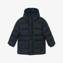 This grey puffer coat for boys by Mayoral combines warmth with a sleek design. The long, padded silhouette ensures comfort and insulation, while the attached hood and elasticated cuffs provide extra protection against the cold. It fastens with a zip and poppers, and has zipped front pockets for added practicality.