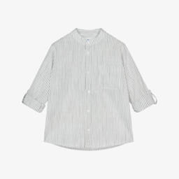 Boys blue stripe cotton shirt by Mayoral showcases a classic collarless design with button fastenings and a handy chest pocket. Crafted from soft, lightweight cotton, it offers both comfort and style, perfect for spring and summer outings. The sleeves can be rolled up and secured with button tabs, making it versatile for any occasion. Limited quantities available, so ensure this wardrobe staple doesn't slip away.