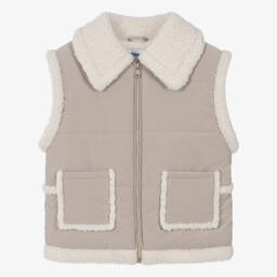 The olive padded vest for boys by Mayoral Nukutavake features stylish chevron quilting, adding a modern touch to any outfit. With a silky smooth feel and lightweight padding, it offers warmth and comfort. The vest includes a convenient zip fastening and practical front pockets, complete with a rubberised winter-themed chest patch. Limited quantities available, making it a unique addition to any wardrobe.