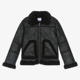A stylish beige zip-up jacket for older girls from Mayoral. Made in soft double-faced faux suede, it is smooth on the outside and fluffy faux fur on the inside and trims. There are two patch pockets on the front and a soft faux fur collar for added cosiness.