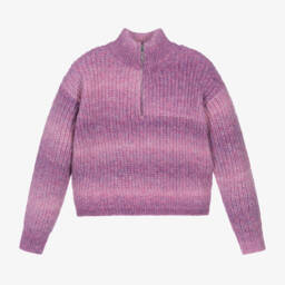 The girls beige knit pullover by Mayoral is crafted in a soft acrylic blend, featuring a chic tonal gradient. Designed with ribbed trims and a stylish gold half-zip, this sweater offers both warmth and elegance. Suitable for layering during the autumn and winter months, it provides comfort and style for every occasion. Limited quantities available, making it a must-have addition to any wardrobe.