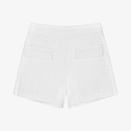 Stylish black Mayoral shorts for girls, made in cotton broderie anglaise and fully lined for comfort. They have patch pockets on the front and a concealed side zip fastening. The waistband is adjustable for a great fit.