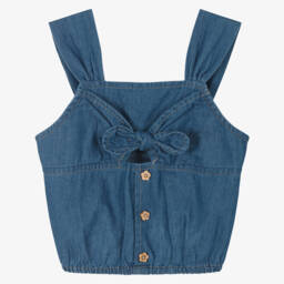 The black and white trim knit vest by Mayoral offers a chic sleeveless option for older girls. Crafted from a soft viscose blend, this top features a stylish halter neck design with contrasting white trim, ensuring both comfort and elegance. Perfect for the warmer months, it pairs beautifully with skirts or trousers for a versatile look. Limited quantities available, making it a must-have addition for spring and summer wardrobes.