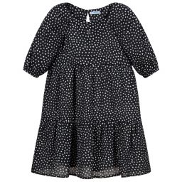 The girls sparkling black tulle dress by Mayoral is a stunning choice for special occasions. Crafted from soft tulle with sequins, it features a comfortable jersey lining and a relaxed A-line silhouette. The dress includes long sleeves with stretchy cuffs and a classic keyhole button at the back. A charming grosgrain ribbon tie adds a touch of elegance. Limited quantities available, making it a must-have for festive gatherings.