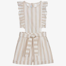 Girls blue chambray playsuit by Mayoral is casual and comfortable. Made in lightweight cotton chambray, it fastens with branded poppers down the front and features patch pockets on the chest and side seams. The waist is comfortably elasticated and includes a detachable adjustable belt. Limited quantities available, so don't miss your last chance to buy this stylish playsuit.