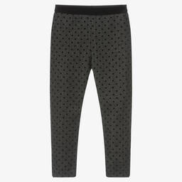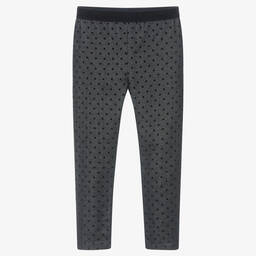 Cool and casual navy blue leggings for girls from Mayoral. Made in stretchy cotton blend jersey, they have velvet polka dots for a fun look and a matching velvet waistband.