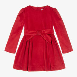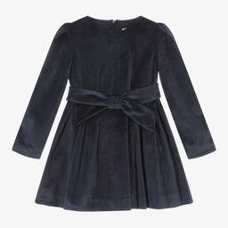 Lovely for a smart occasion, this blue velvet dress for girls is by Mayoral. There are elegant puffed sleeves and the removable bow belt is trimmed with sparkling diamantés. The dress is lined in lightweight cotton voile for comfort, with a concealed zip fastening on the back for a neat finish.