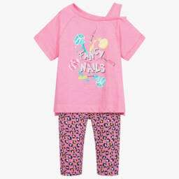 A delightful mauve pink and blue leggings ensemble for girls by Mayoral features a three-piece outfit crafted from soft and stretchy cotton jersey. This set includes a charming long-sleeved top adorned with wooden buttons, elasticated trims for comfort, and polka dot leggings with an elasticated waist. Perfect for relaxed weekends, these leggings pair beautifully with the ivory T-shirt, creating an effortlessly stylish look. Limited quantities available, so seize this opportunity to enhance a young wardrobe.