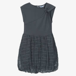 Girls ivory bubble dress by Mayoral offers a charming and sophisticated look. The sleeveless bodice is crafted from soft Milano jersey, featuring an elegant knotted detail. It has a discreet zip fastening at the back for a seamless finish. The chiffon bubble skirt is beautifully designed with delicate horizontal stitching, adding a touch of grace. Perfect for special occasions, this dress is ideal for older girls seeking style and comfort. Limited quantities available, ensuring exclusivity.