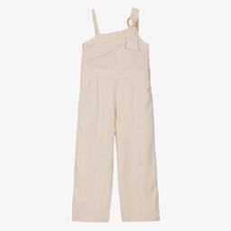 Fuchsia pink jumpsuit for girls by Mayoral, made in a soft and lightweight linen blend. Cool and stylish, it has a shirred back for a comfortable fit and a concealed side zip fastening.