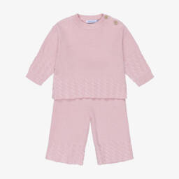 Girls ivory knit ensemble by Mayoral features a charming knitted jumper and trousers combination. Crafted with delicate textures, the outfit includes decorative buttons on the shoulder for easy dressing. The cosy knit fabric ensures warmth and comfort, making it perfect for the cooler autumn and winter months. Limited quantities available, so seize the opportunity to add this elegant set to a wardrobe before it's gone.