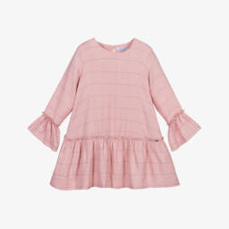 Girls pink floral dress by Mayoral features a delightful design crafted from a linen-blend organza, creating a sheer and lightweight feel. The dress is adorned with a charming floral pattern and a fixed bow at the waist, offering a classic sleeveless silhouette. Its cotton lining ensures comfort, while the tulle trim adds volume to the hem. Perfect for special occasions, this dress is available in limited quantities, making it a must-have for the season.